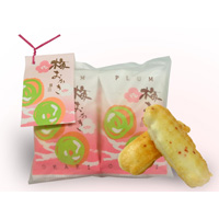 | 〈葵の倉〉 紀州産梅を使って爽やかな味に仕上げたふんわりさくさくとした食感のおかきです。 ●梅おかき(5袋入) 税込540円 | ![]() ![]() ※写真はイメージです。 |