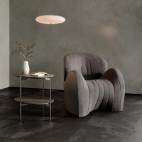 | 家具〈風間家具〉 滑らかな曲線がやさしい、コンパクトな椅子です。 ●ラ・パルフェ ラブシート(幅122×高さ78×奥行63×座面の高さ43cm) 税込88,000円 | ![]() ※写真はイメージです。 |