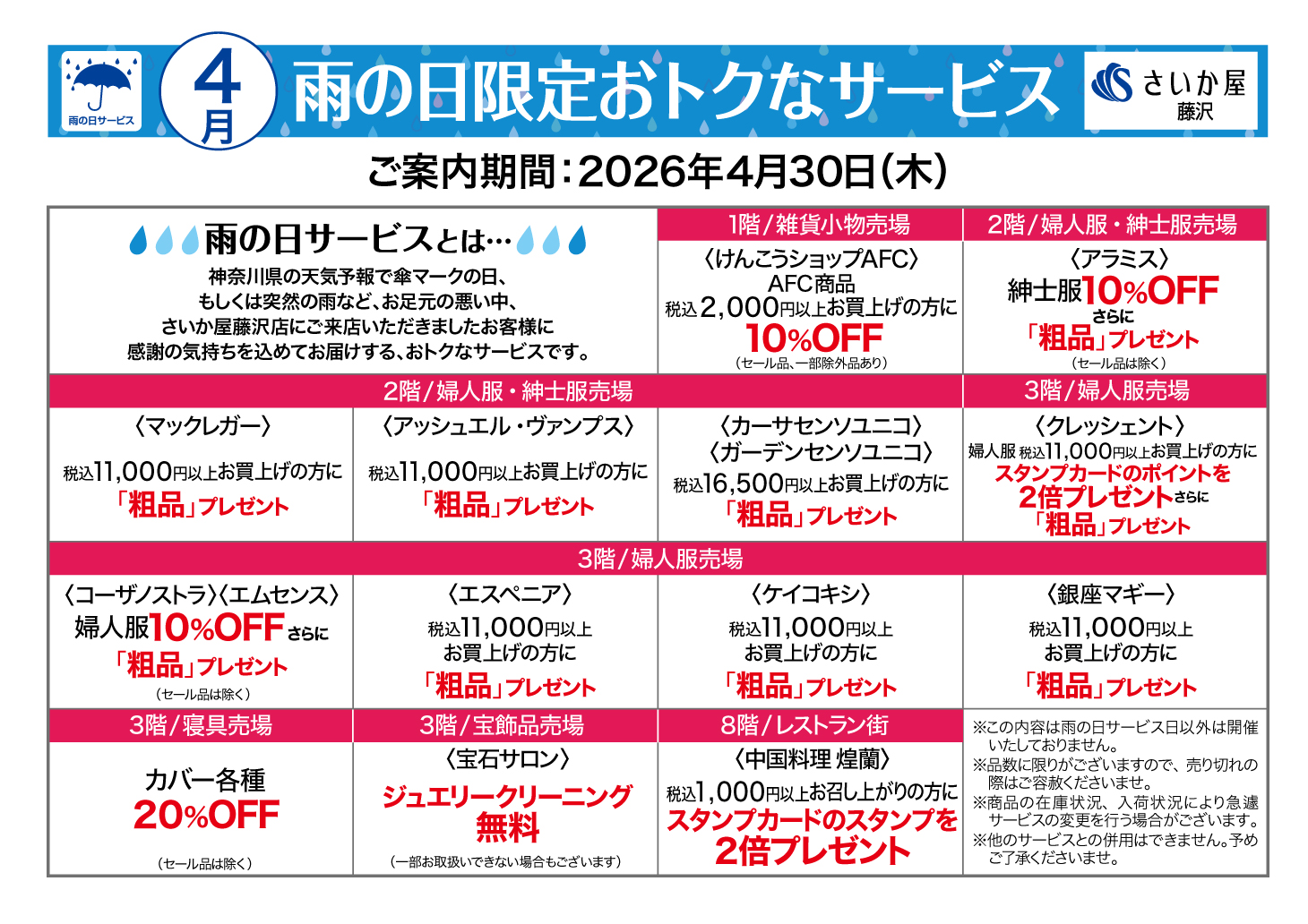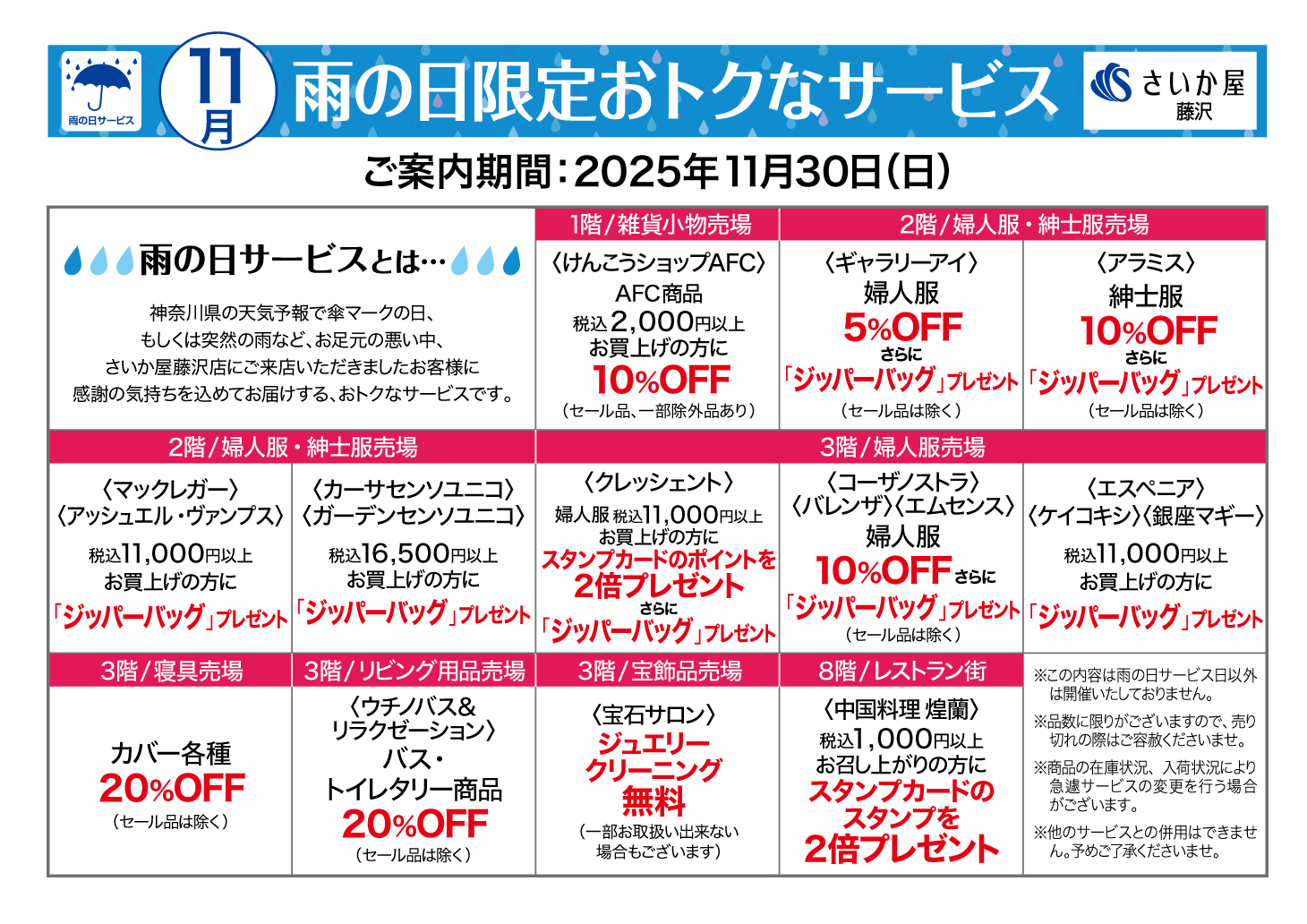 藤沢店の雨の日サービス