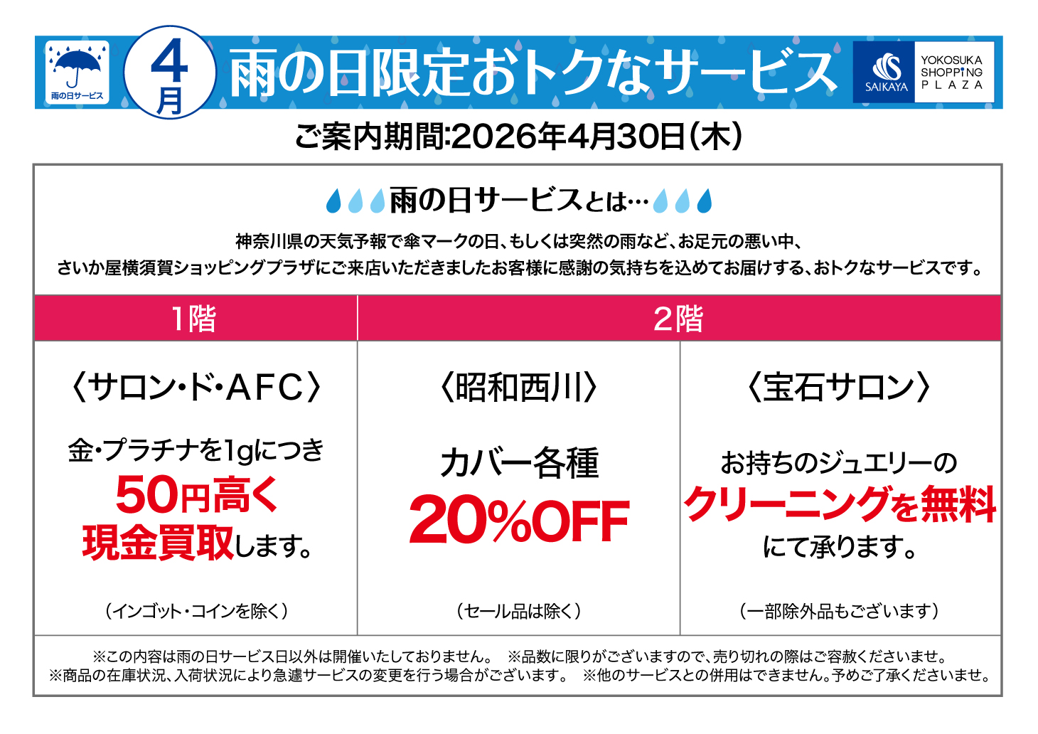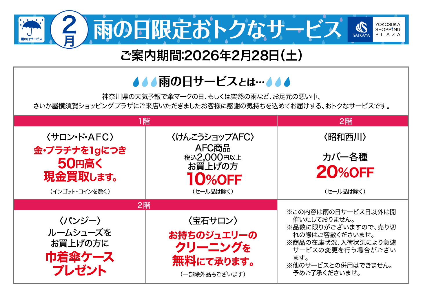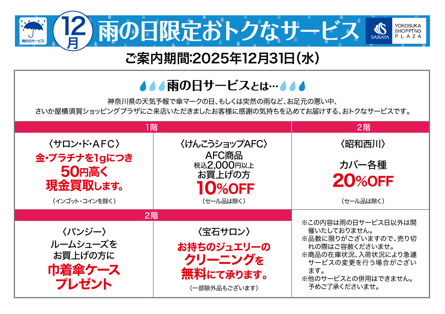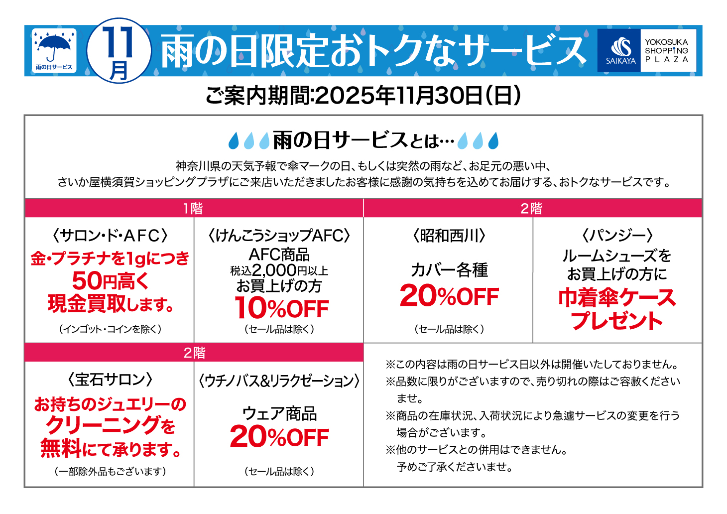 横須賀店の雨の日サービス