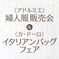 | イベントスペース | 〈アドルミエ〉神戸発婦人服 期間限定販売会&〈カ・ドーロ〉イタリアンバッグフェア | |