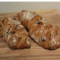 | ライ麦を使ったロデヴ生地にほんのり甘いホワイトチョコと栗の粒が入った新作パンです! ●栗とホワイトチョコのリュスティック 税込388円 | ![]() ※写真はイメージです。 |