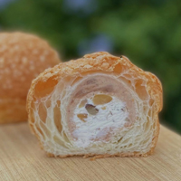 | 人気の葉山メロンパンがマロンになりました♪ クロワッサン生地にジャンドゥーヤを入れたサクサクのクッキ一生地の中に、マロンクリームと刻み栗の入った生クリームがたっぷり! ●葉山メロンパン 税込424円 | ![]() ※写真はイメージです。 |