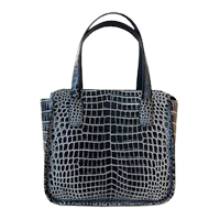 | 〈マリーバッグ〉 美しく染め上げた革にコントラストのある色を重ねた目地染め。 単色では出せないニュアンスが個性を引き立ててくれます。 天ファスナー開閉、両アオリポケットで利便性の高い商品です。 ●クロコダイルハンドバッグ(日本製、H37cm×W24cm×D11cm) 税込110,000円 | ![]() ※写真はイメージです。 |