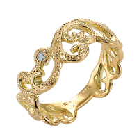 | 東京〈透かし彫りゴールドジュエリー ミカミ〉 指を美しく演出する、縁起の良い唐草文様のリングです。 ●K18透かし彫りダイヤモンドリング(D:0.02ct)〈現品限り〉 税込297,000円 | ![]() ※写真はイメージです。 |